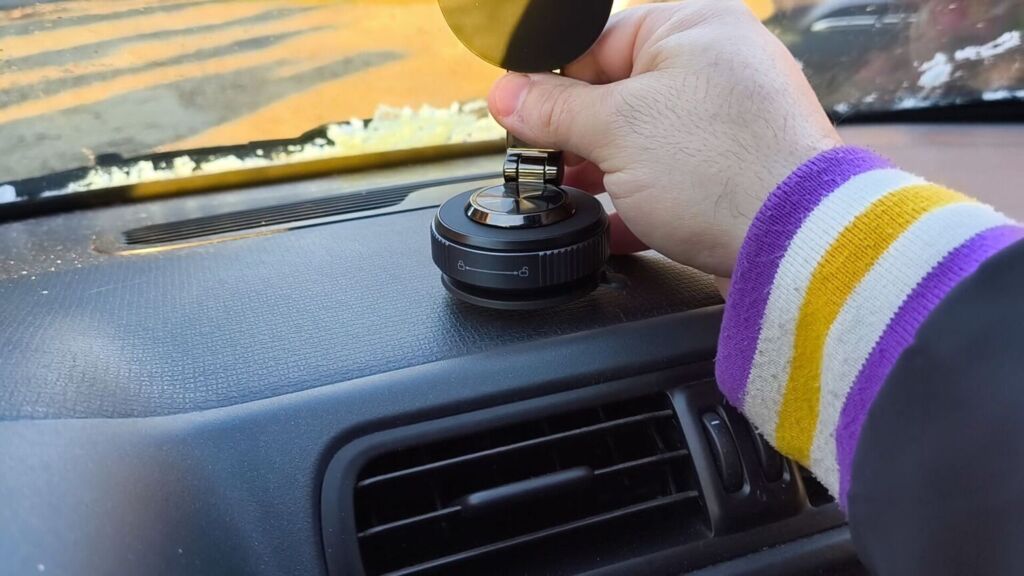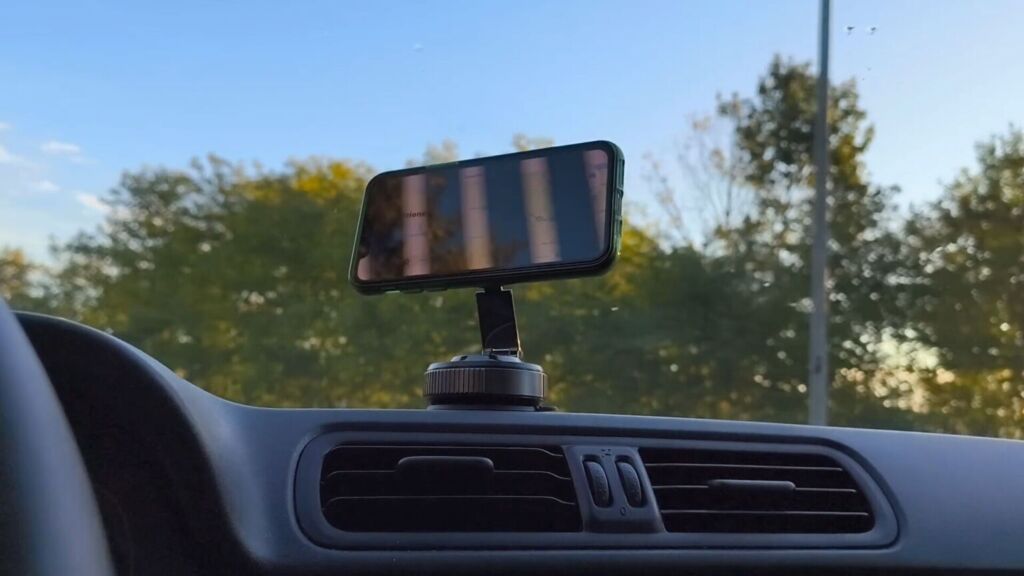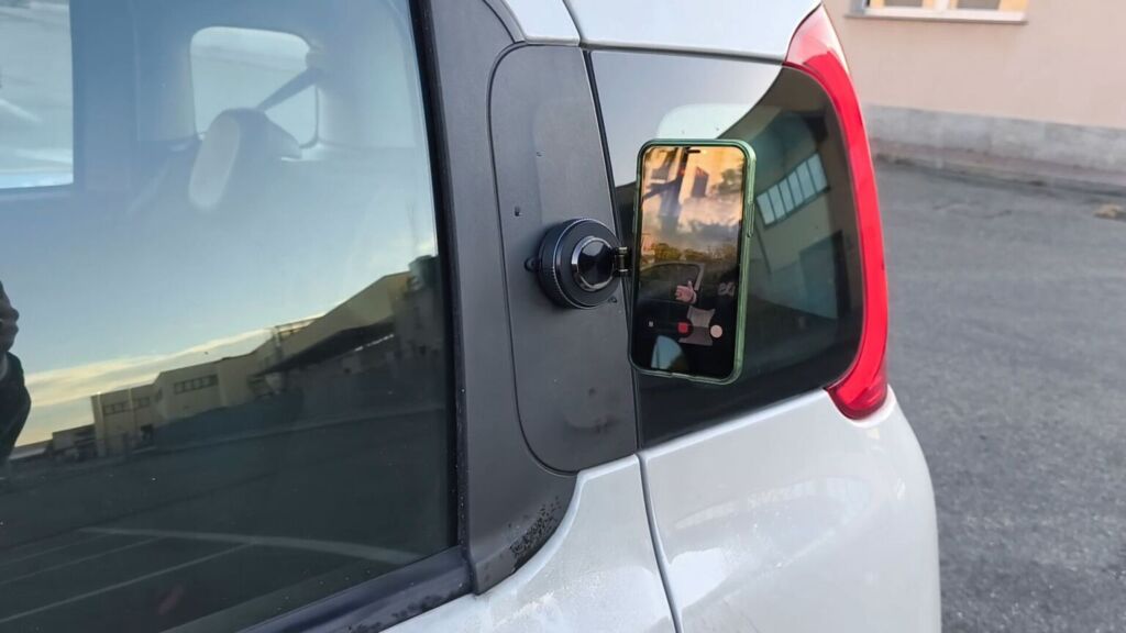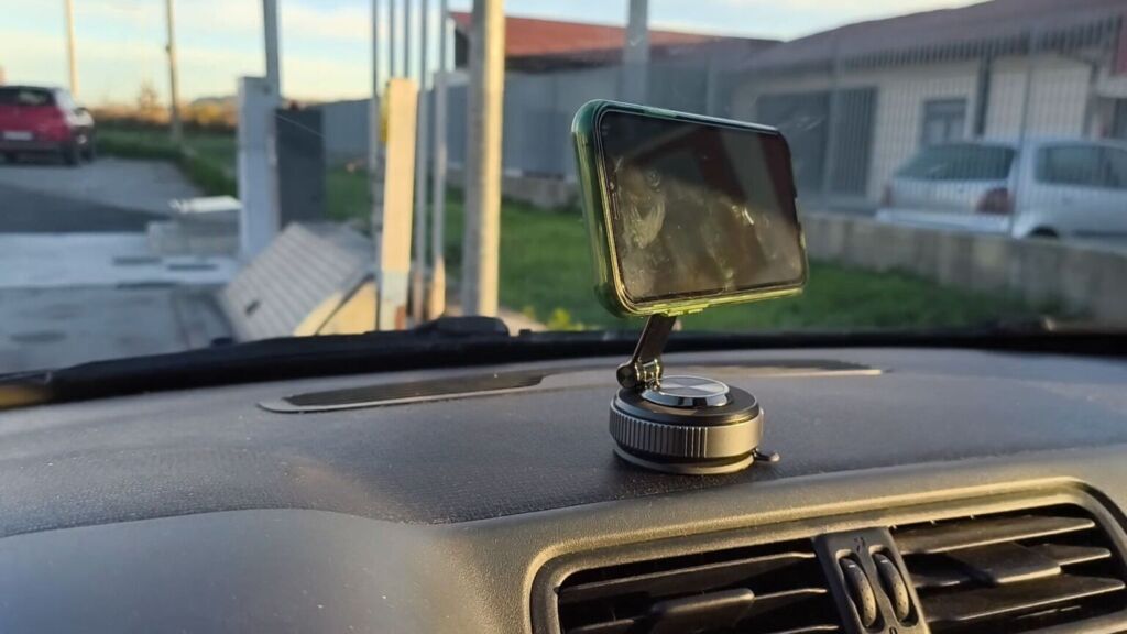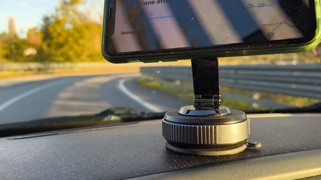 The magical "suction" effect is made possible by a rotating ring that creates a sort of vacuum. Furthermore, the MagSafe arm can be tilted or folded for space-saving transport. The MagSafe magnet in our MSXTTLY gadget is truly powerful: I did a quick test by attaching an iPhone 11 Pro, and despite the jolts it received, it never fell off. I actually performed several tests, from the more classic one in the car, attaching the phone holder to the rough surface of my Fiat Panda, to more extreme conditions, such as attaching it to the outside door of the car while I was driving at high speed.